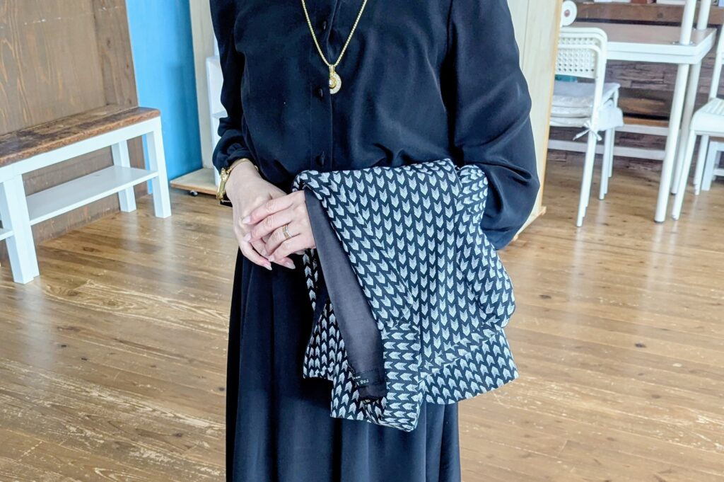 このように整え腕にかけて持つと、丁寧で上品な印象ですよね。